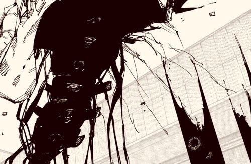 옷코츠가 고죠 육체로 영역전개를 할때는 이런 모습이 됨. 이후 스쿠나 영역의 뼈정도만 나오는 걸 보면
