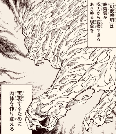 카시모의 술식해방이 주력으로 변환가능한 모든 현상을 실현하기 위에 육체를 만든다 > 육체를 제외하면 마루의 술식이 생각나는 부분이다.